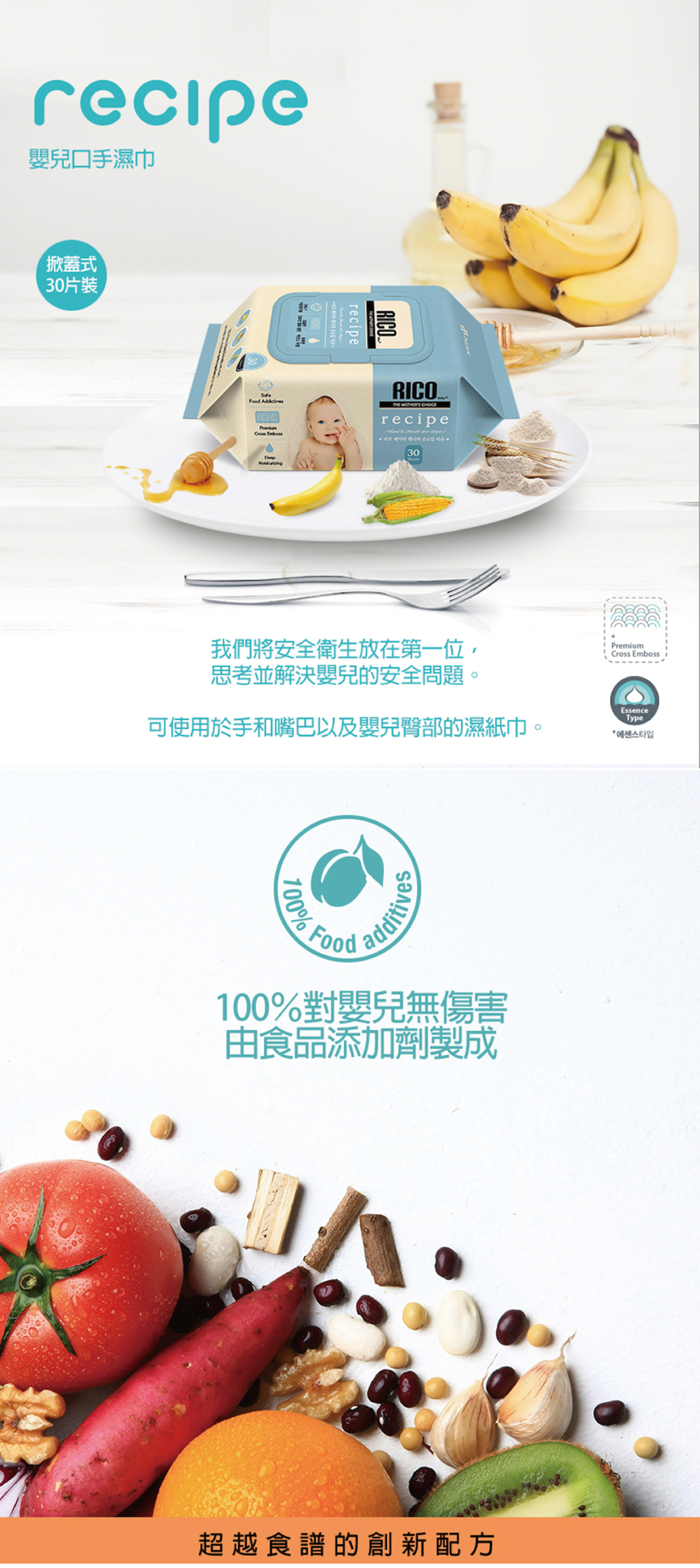RICO baby|嬰兒口手濕紙巾Recipe 30抽-12入