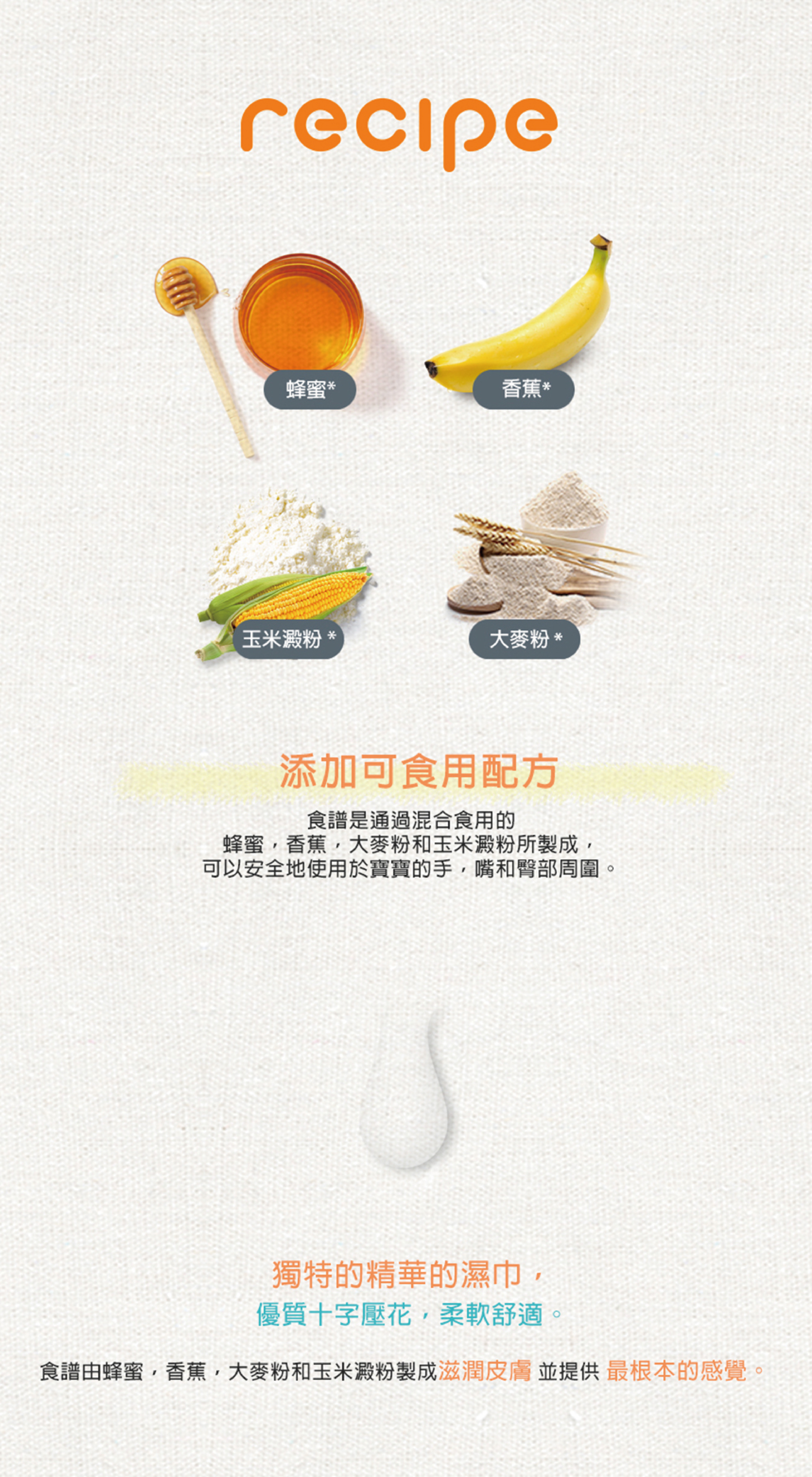 *添加可食用配方(香蕉、蜂蜜、玉米、大麥粉)