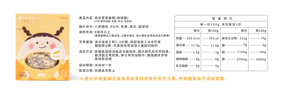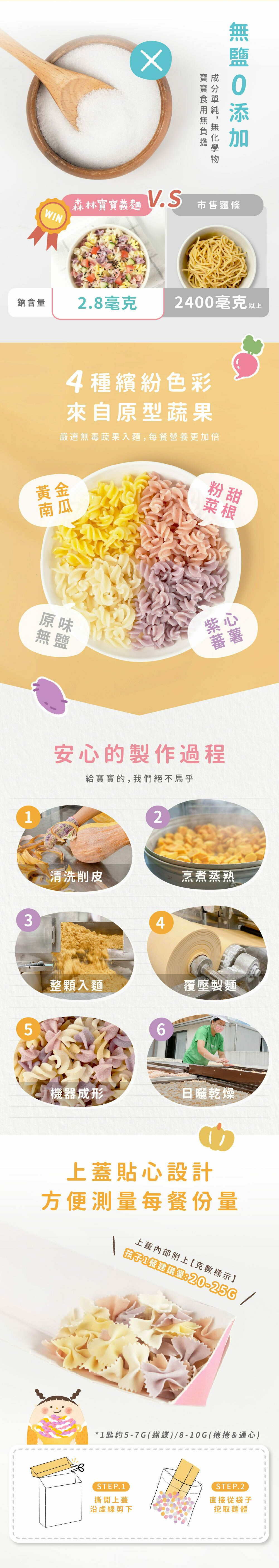 我們的麵麵都是無鹽、無化學添加,讓寶寶可以安心食用!