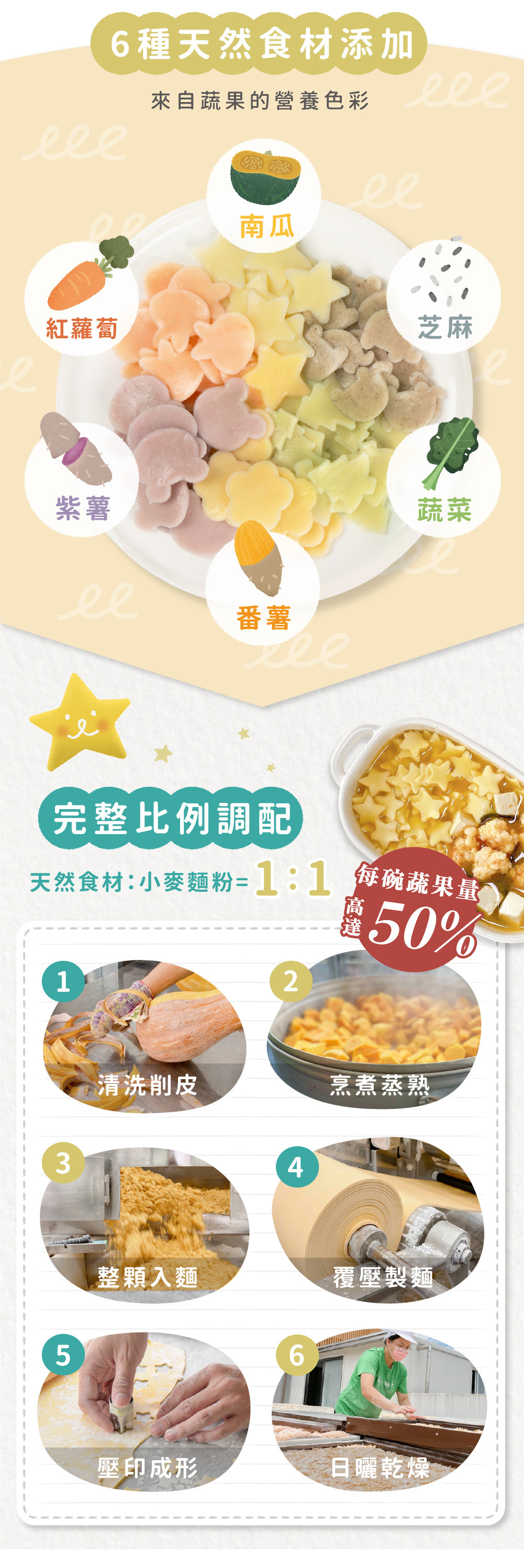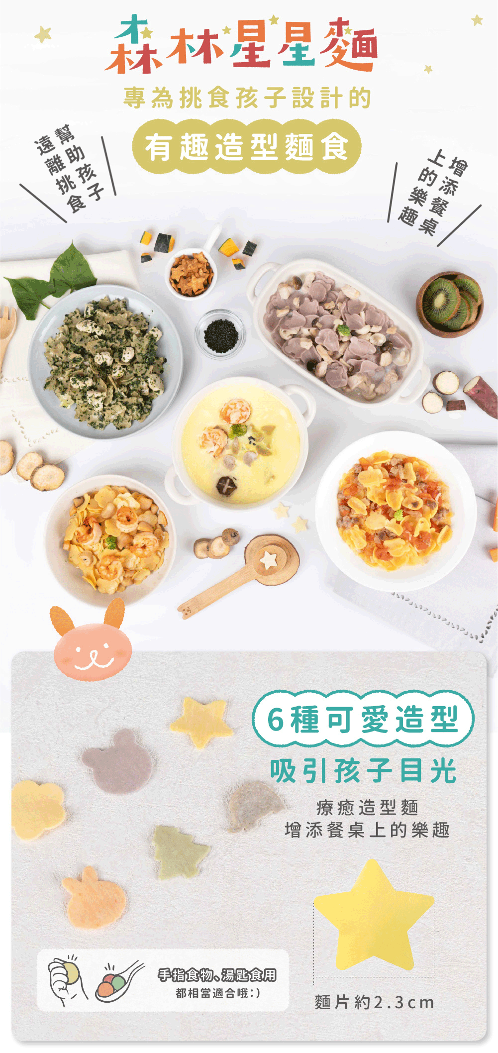 星星麵雖然成分與寶寶麵相同,但因麵體大小較適合一歲半以上的寶寶食用唷!