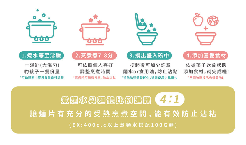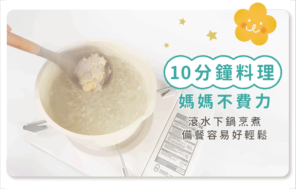 烹煮建議|約7-8分鐘即可撈起,可依寶寶飲食狀況調整