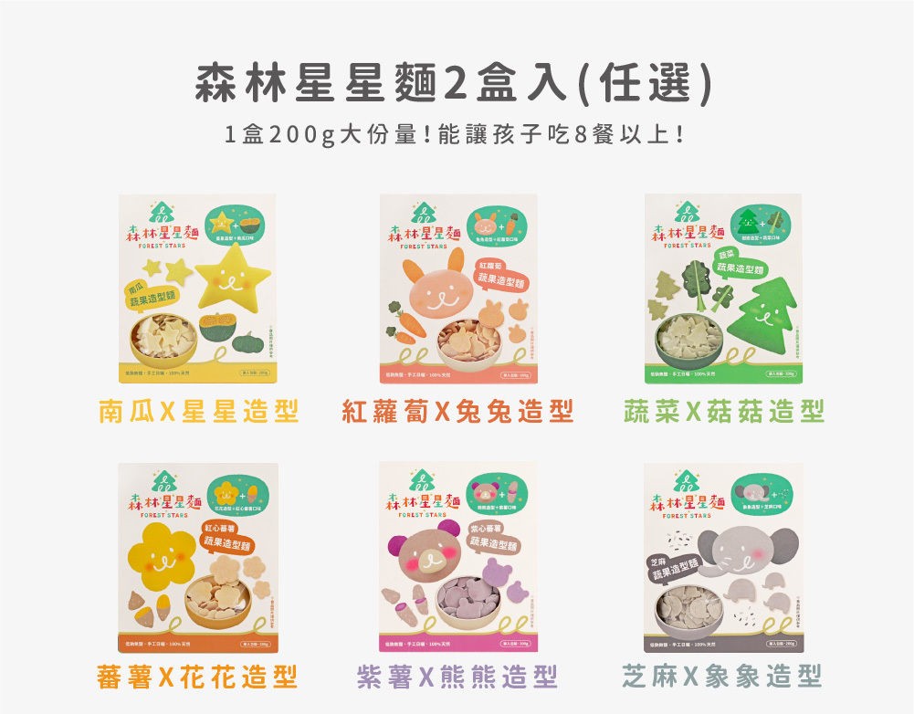 森林麵食為媽咪打造天然健康單純的副食品為理念,麵食都使用作物加上麵粉以及些許的水製成,