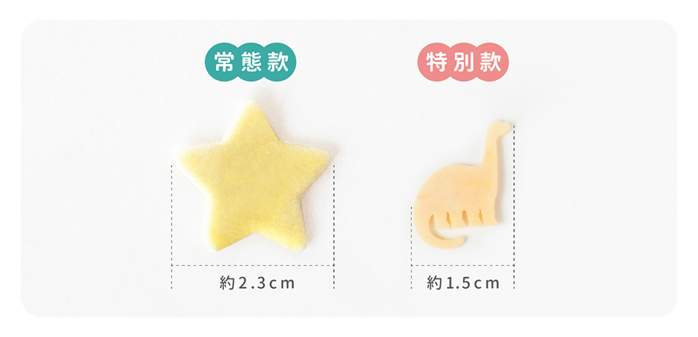 7.特別款(動物麵/車車麵/恐龍麵)與常態的星星麵有什麼不同呢?