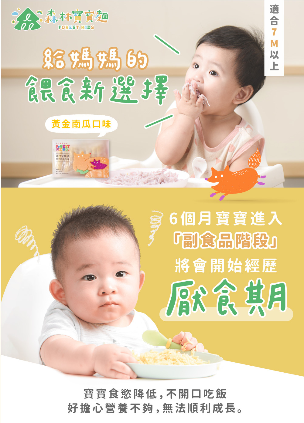 想要嘗試新的口感及味道,森林寶寶麵給媽媽們全新的餵食選擇,