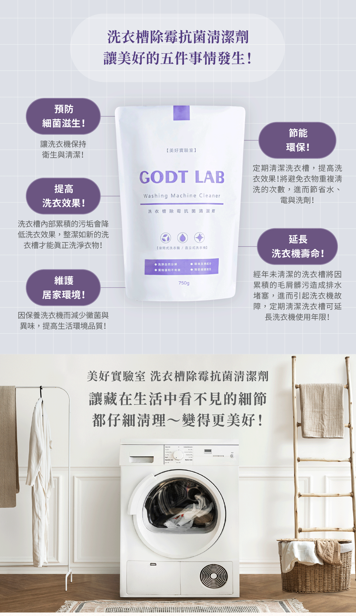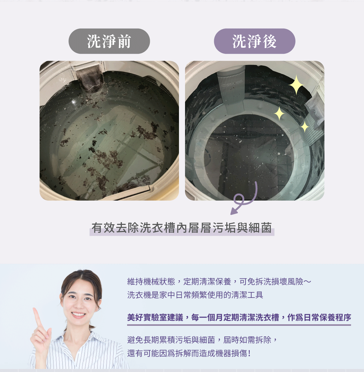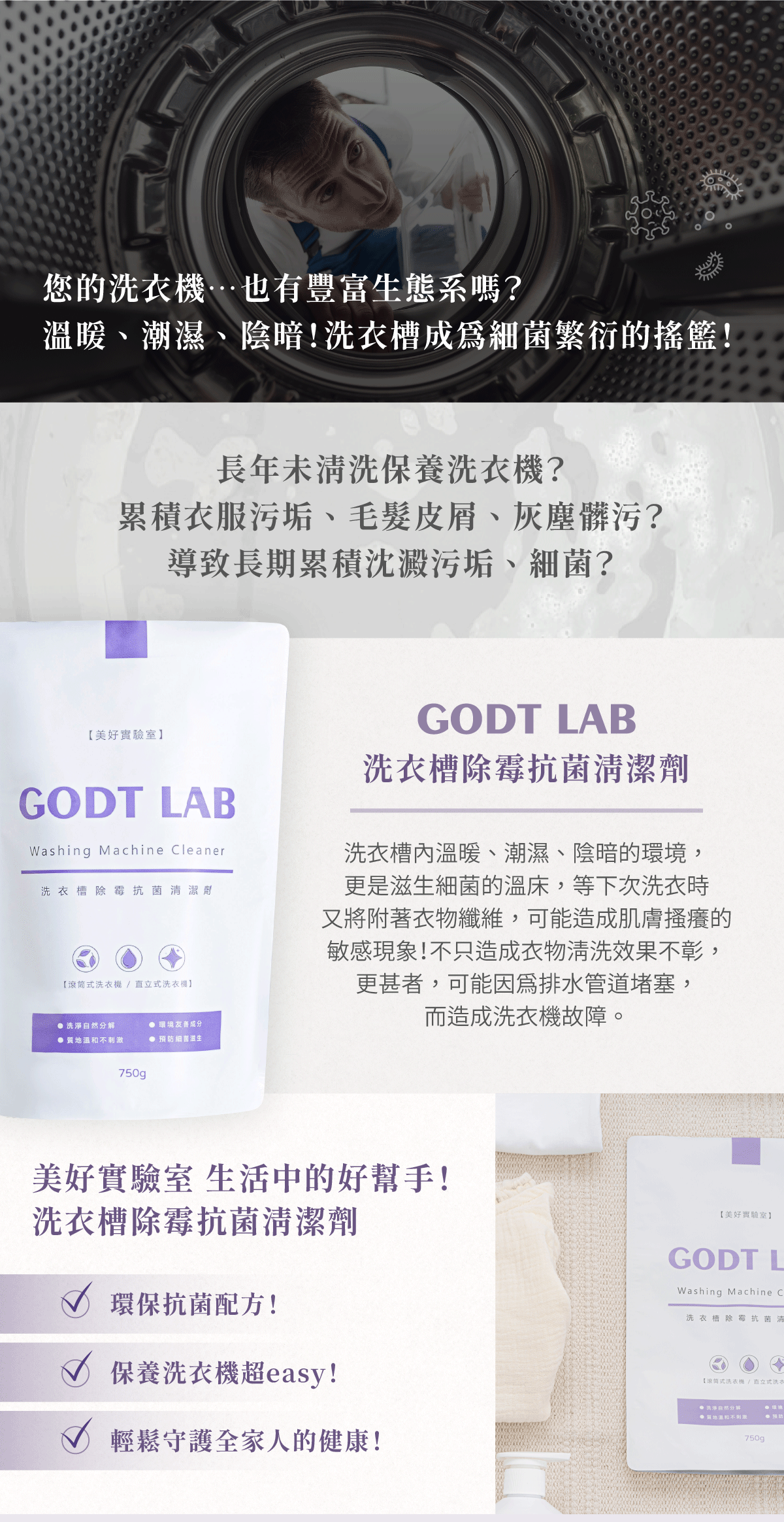 ✅維護居家環境!因保養洗衣機而減少黴菌與異味,提高生活環境品質!