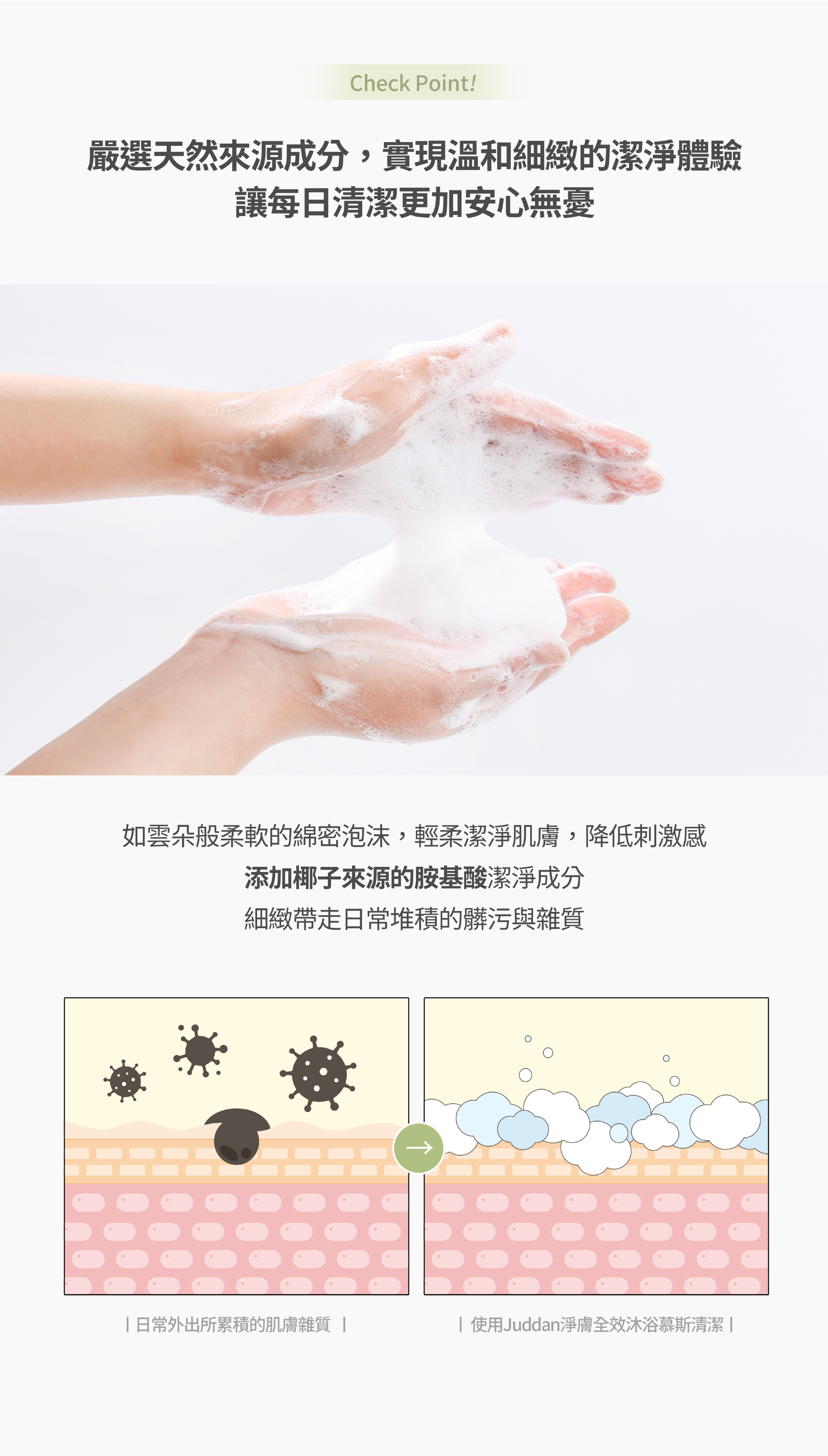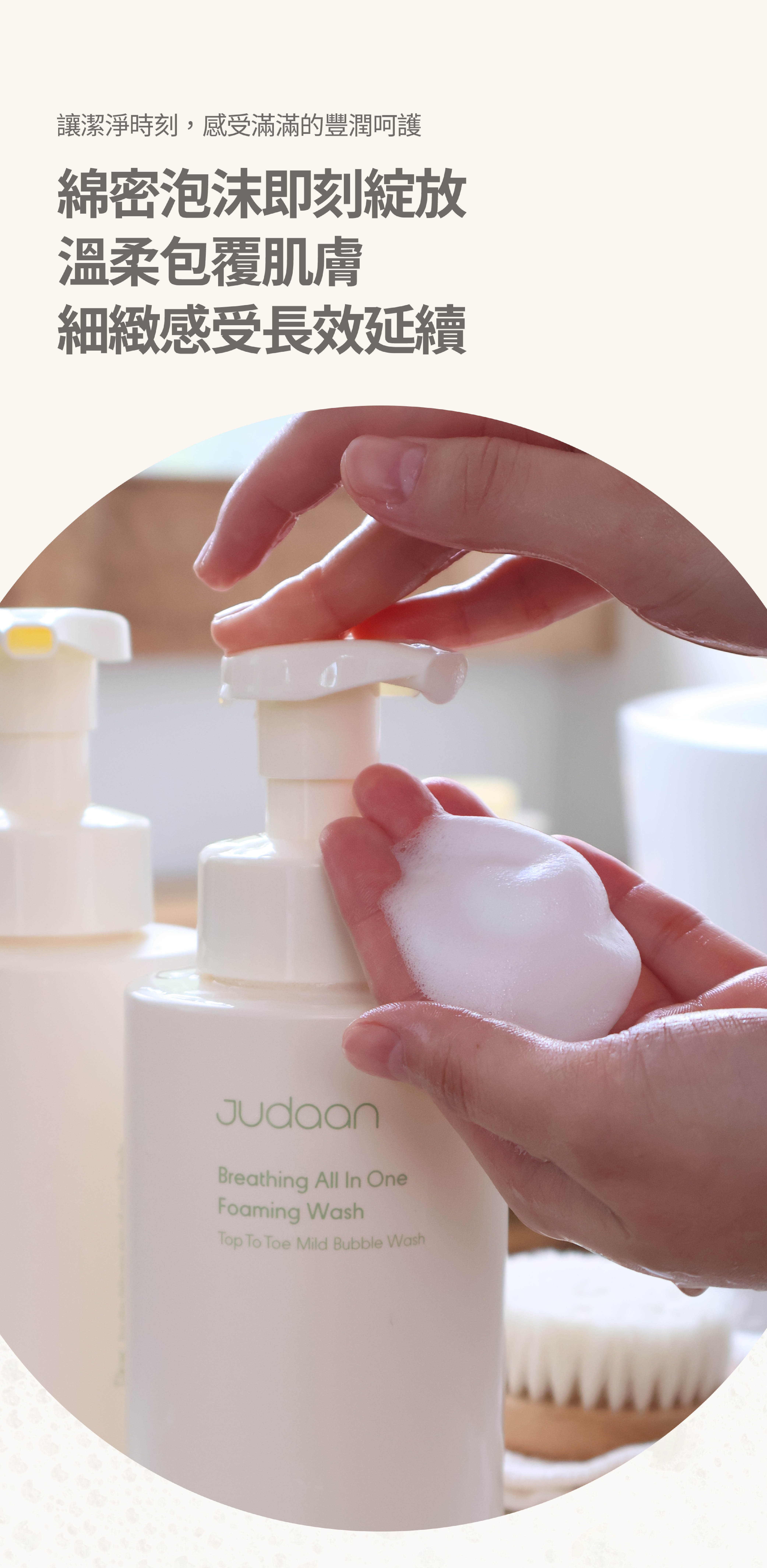 綿密細緻泡泡能減少摩擦,一瓶即可完成身體、頭髮與臀部清潔。