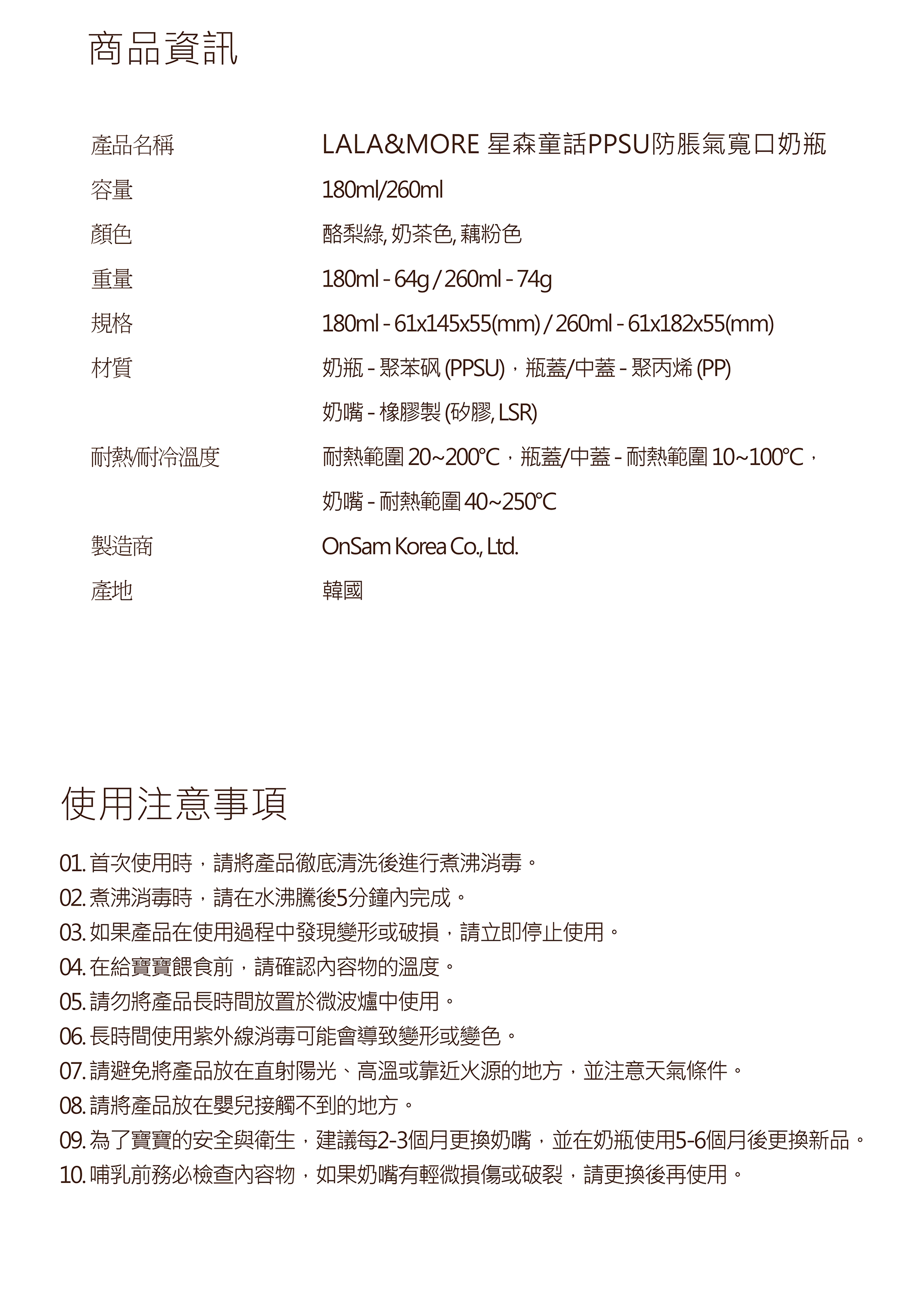 商品名稱| LALA&MORE 星森童話PPSU防脹氣寬口奶瓶