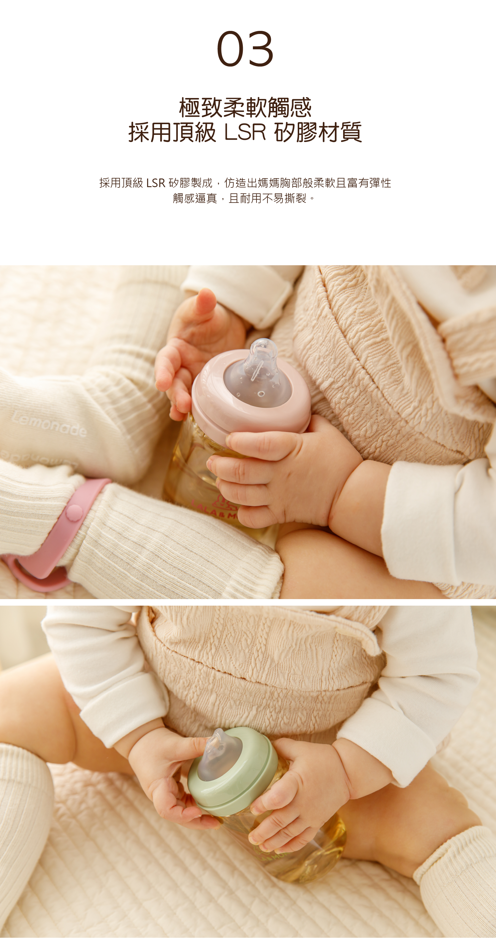 *LSR矽膠材質仿照媽媽胸部,符合市面奶瓶可併用