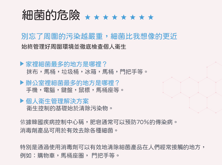 *通過5種殺菌能力測試(金黃葡萄球菌、大腸桿菌、綠膿桿菌、芽孢桿菌、沙門氏菌)