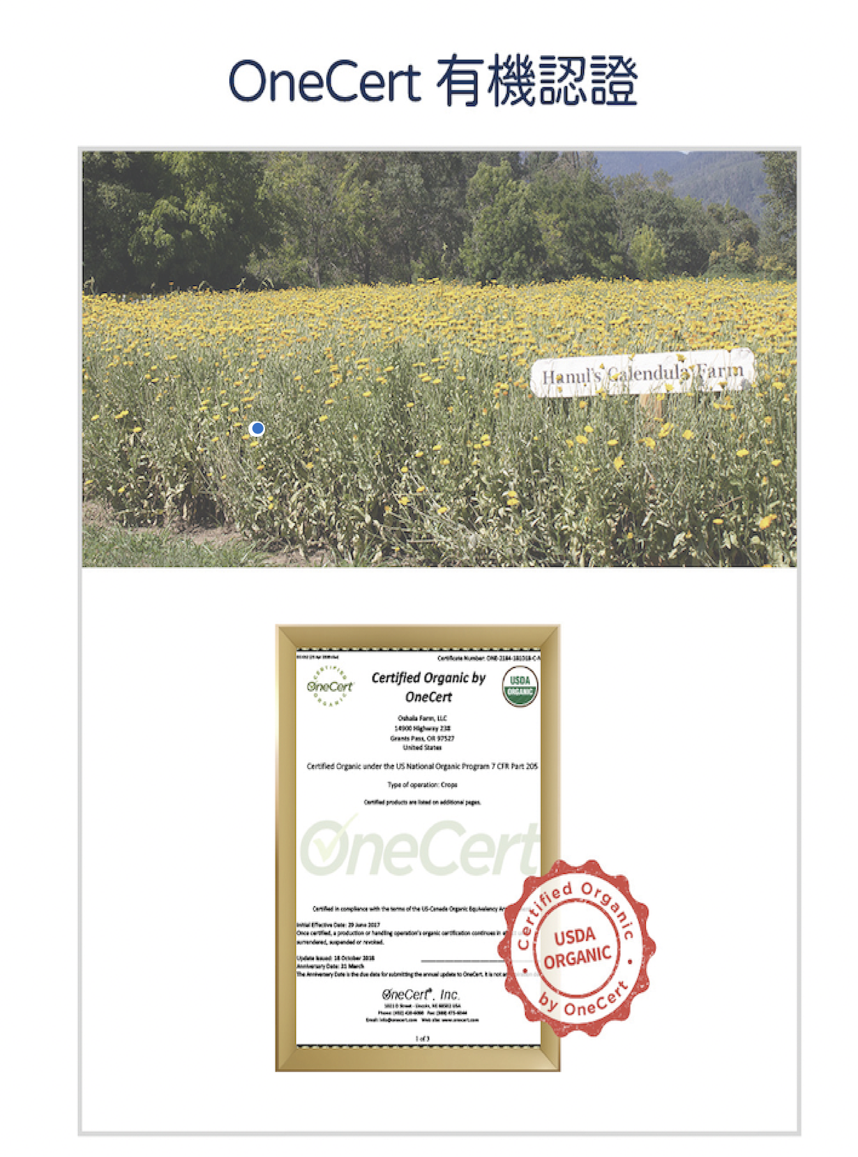 *經美國USDA認證的有機金盞花提取物