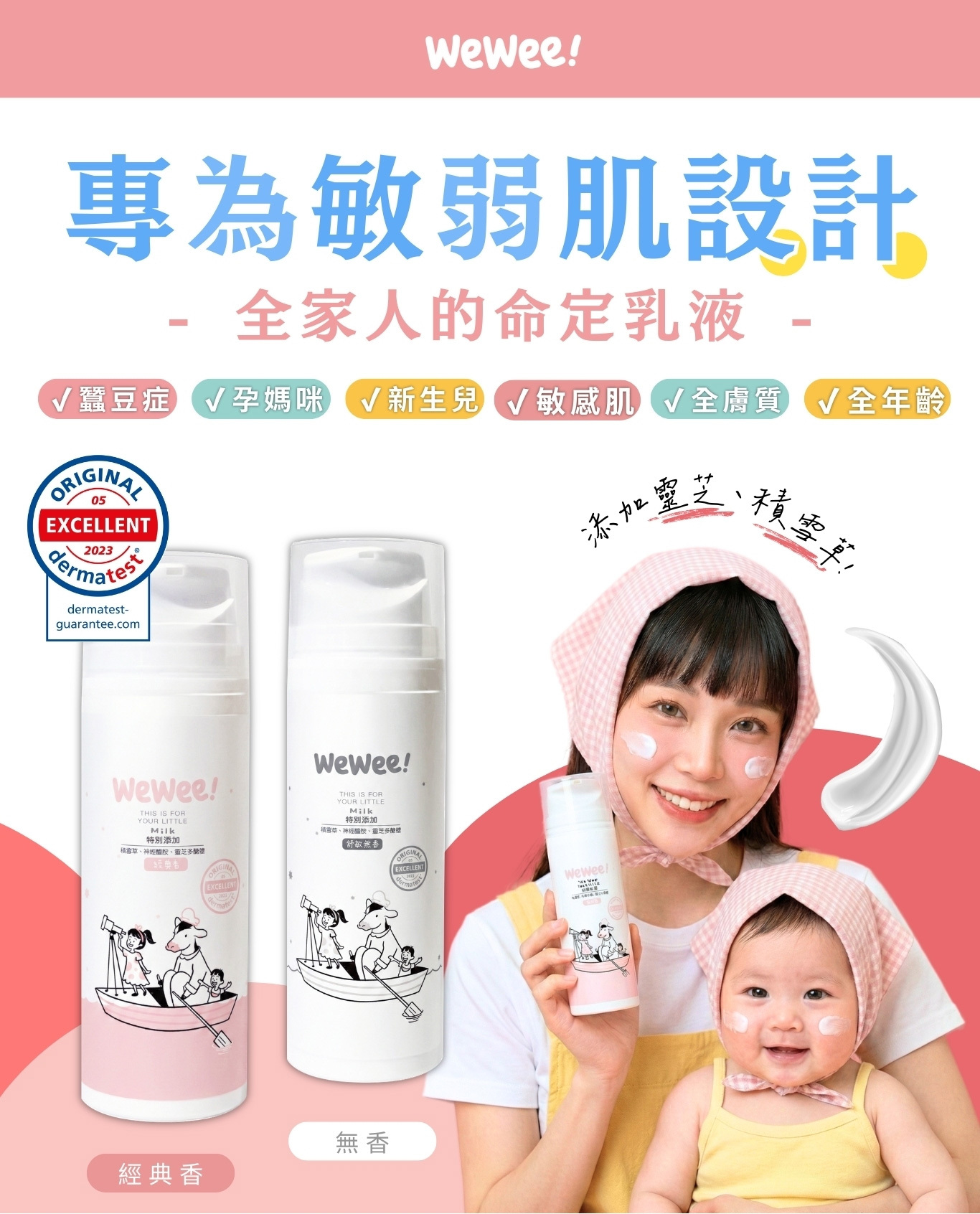 小至剛出生嬰幼兒護理,需要特殊照護的孕膚修復、弱敏舒緩到全族群肌膚日常保養皆可安心使用。