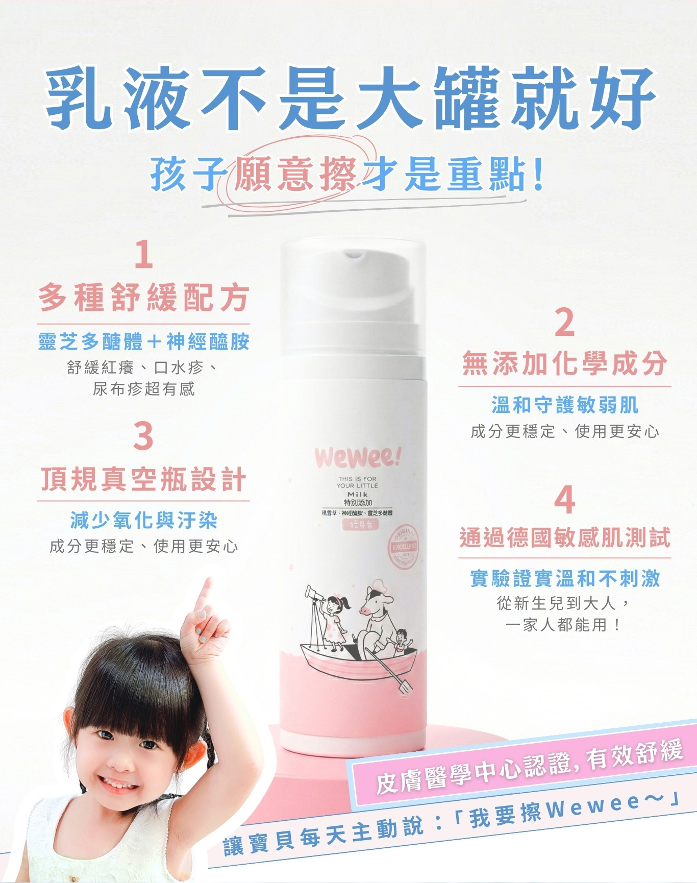 站在爸媽的高度堅守護膚品質,成就一瓶專為寶貝設計的兒童乳液。