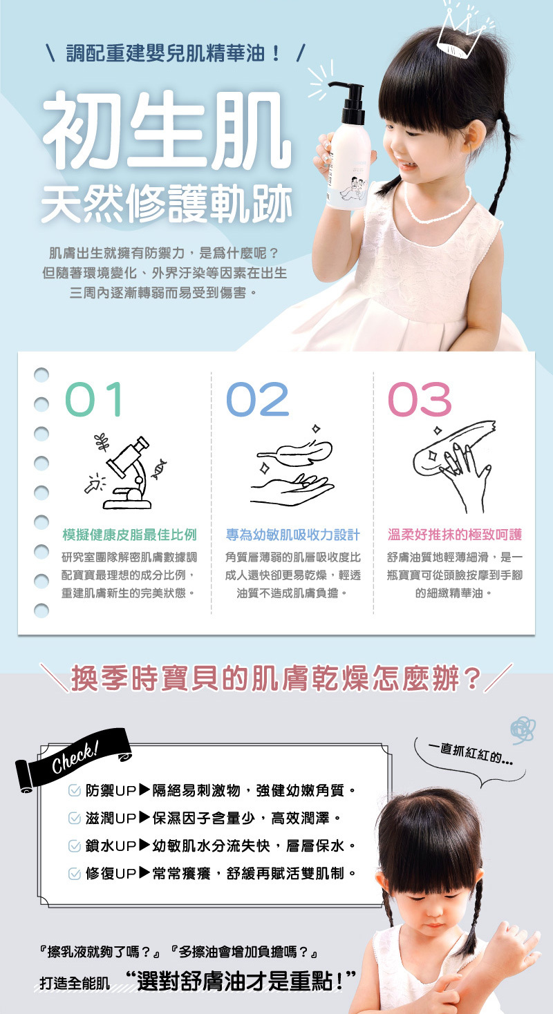 與生俱來的健康皮脂膜提供寶寶天然的防衛屏障,但隨著環境變化、外界汙染等因素在出生三周內逐漸轉弱而易受到傷害。